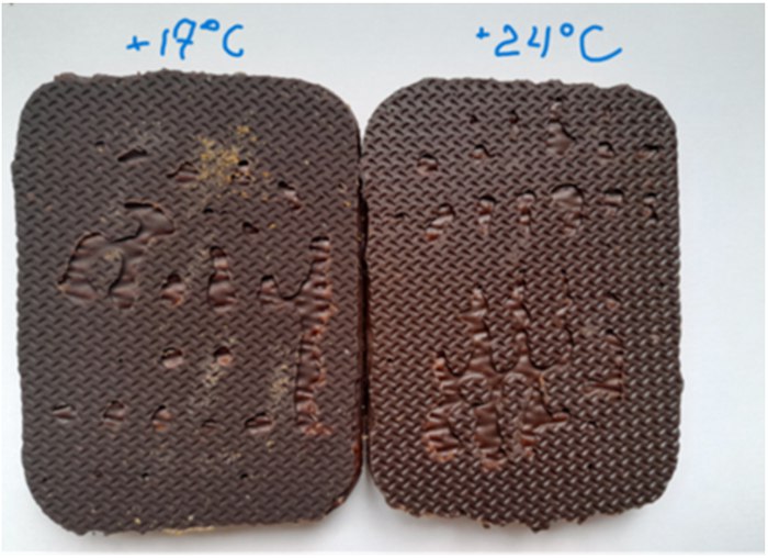 У образцов, хранившихся при температуре 24°С, глазурь имеет выраженный блеск, при нажатии глазурь пачкает палец.