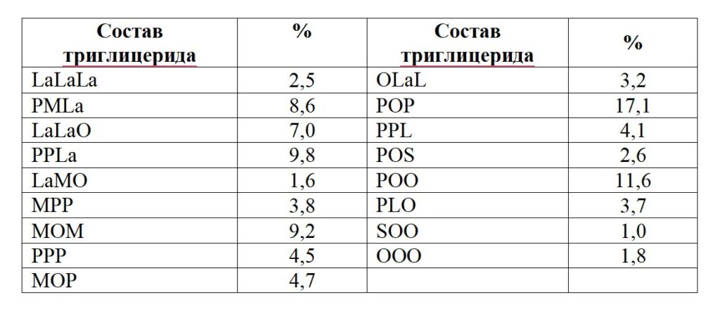 Из табл.3 видно, что преобладающим триглицеридом является РОР (17,1%). Преимущество использования переэтерифицированных жиров заключается в том, что они имеют более выраженные пластичные свойства, что важно для равномерного распределения в тесте.
